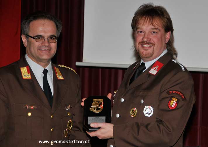 Abschnittsfeuerwehrkommandanten die Plakette für eine