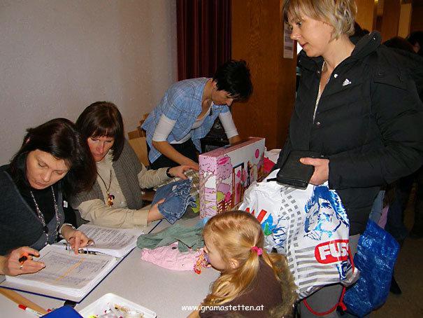 vor dem Beginn des Umtauschbasars um 8.00 Uhr standen die