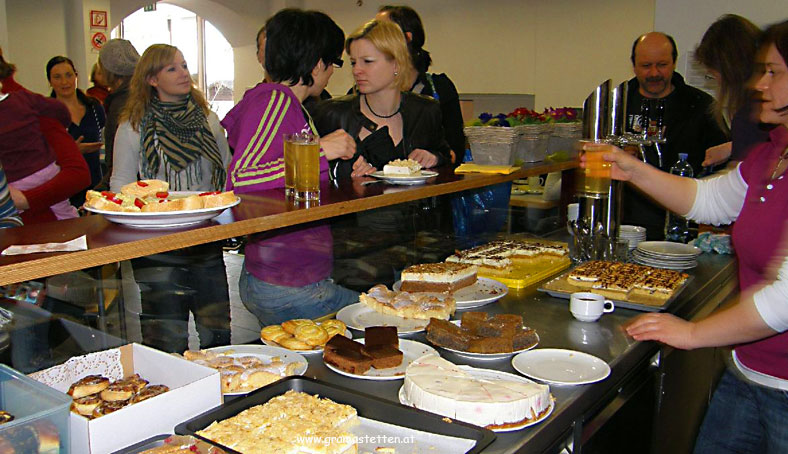 an den Kassen anstellen. Aber nun warteten Kaffee und