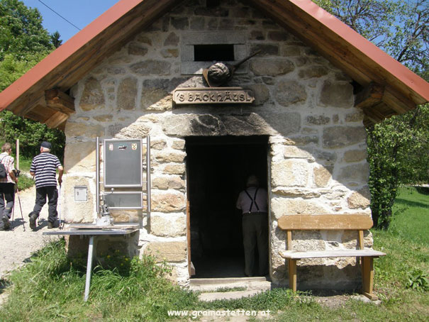 geführt, die gleich hinter der Taverne auf Steinfelsen