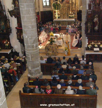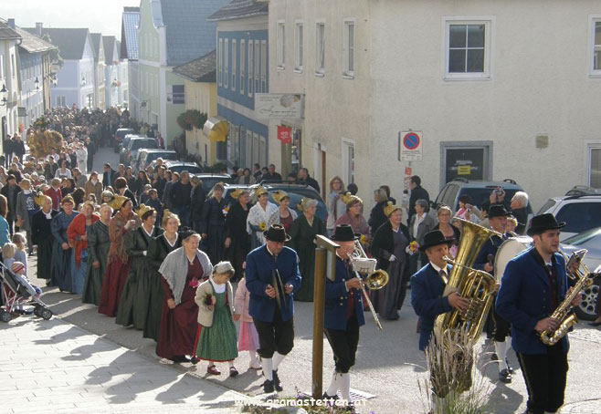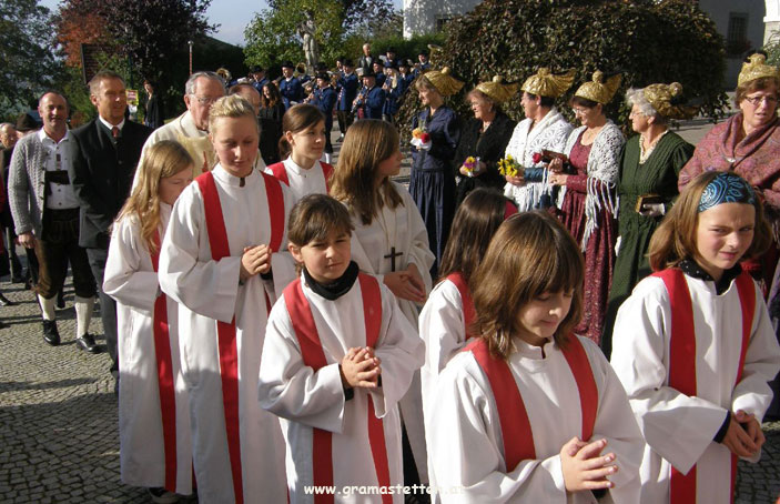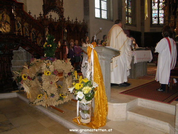 Beim Erntedankfest 2010 in Gramastetten wurde nach dem Einzug der Erntekrone in die Kirche und einer Dankmesse, in einer gemeinsamen Feier im Pfarrsaal den älteren Menschen in Gramastetten gedankt.