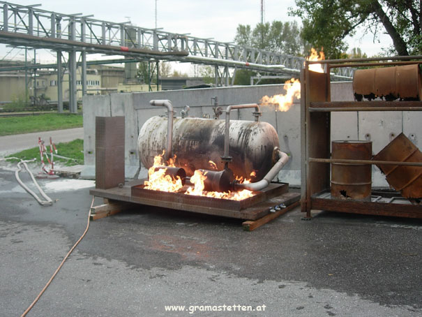 brennenden Gastank und einen in Brand stehenden