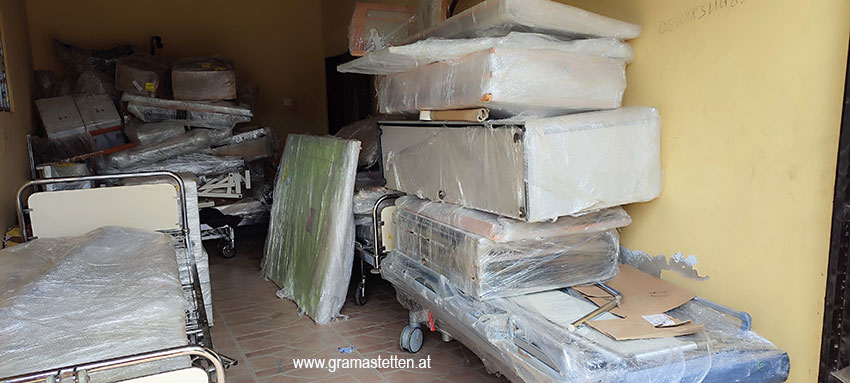 Fast die ganze Ausstattung des Hospitals wurde von Krankenhäusern, Altersheimen und Arztpraxen aus Österreich gespendet und insgesamt in