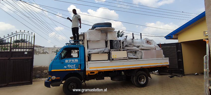 4 Schiffs-Container nach Ghana gebracht. Diese Mammutaufgabe und die Organisation hat ein Förderverein aus Wels gemanagt. Die Mühe dahinter ist auf beiden Seiten bewundernswert.